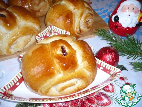 Рецепт «Булочки-рулетики " Новогодние подарки"»: