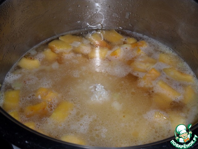 Доводим до кипения, убавляем огонь до среднего и варим суп 20-25 минут.