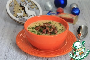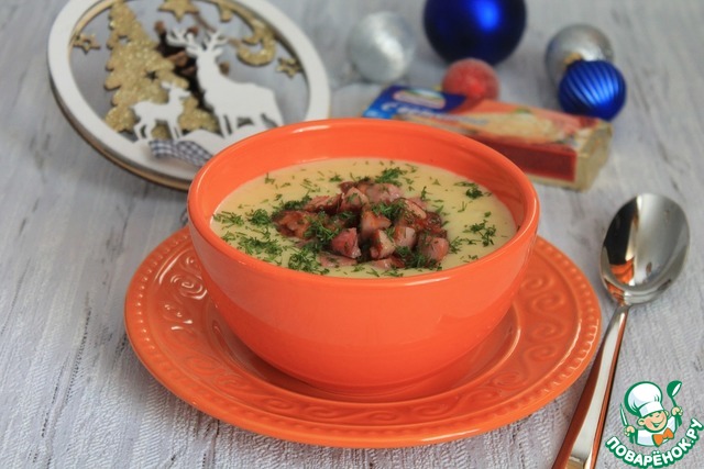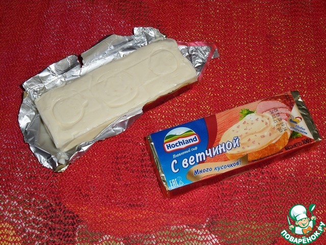 Для приготовления супа я буду использовать плавленый сыр с ветчиной ТМ "Hochland".