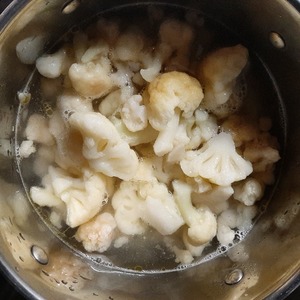 Добавить в кастрюлю соцветия капусты, залить горячей водой, дать закипеть.