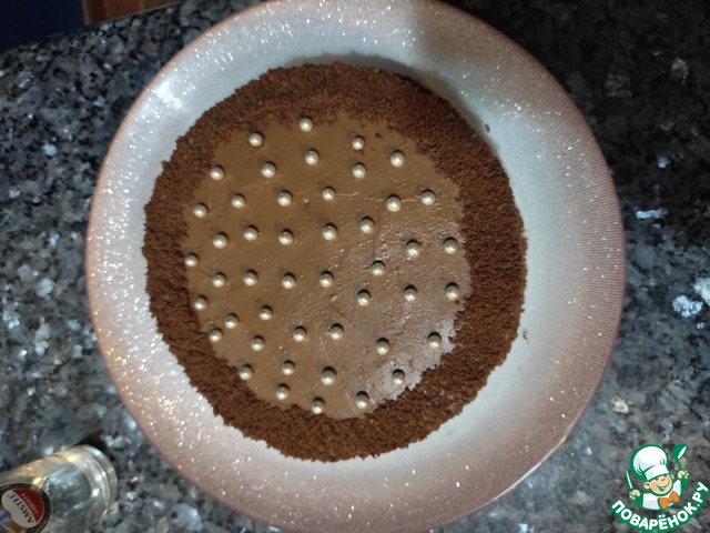 В рецепте использовалась готовая кофейная пропитка для тортов и пирожных. Если у вас ее не оказалось, можно заварить крепкий кофе, добавить сахар, ром или коньяк. Пропиткой пропитать каждый корж при сборке торта.