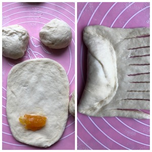 Накрыть заготовки булочек полотенцем и дать отдохнуть минут 20. Переложить булочки на противень застеленный ковриком для выпечки. Смазать булочки взбитым яйцом и отправить в духовку при 180 гр до готовности.