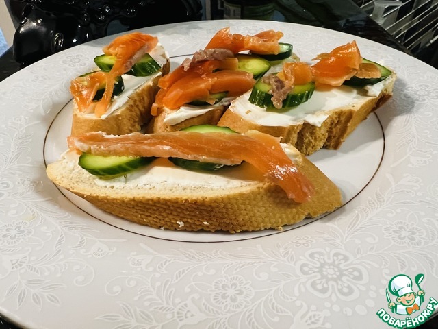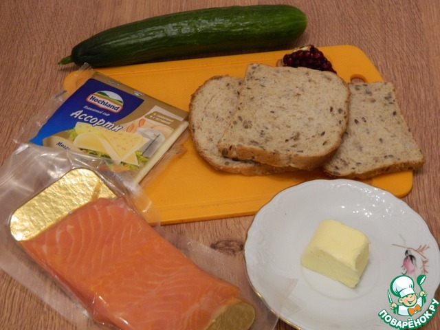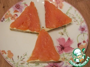 На сыр выложить форель слабосоленую.