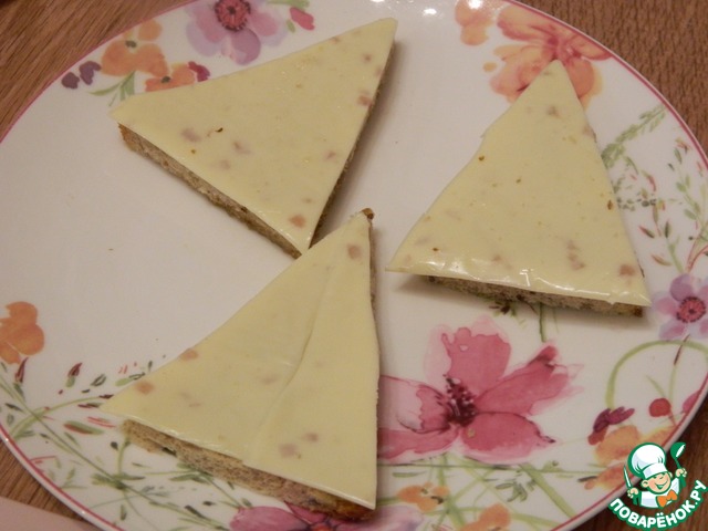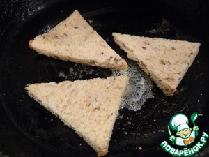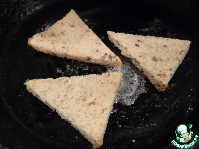 Хлеб обрезать от твердых корочек со всех сторон, вырезать треугольник.