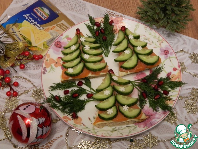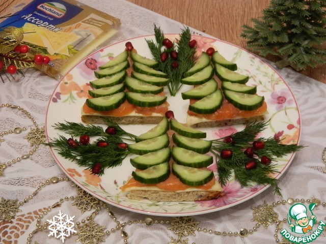 Рецепт «Закусочные елочки из огурца и красной рыбы»: