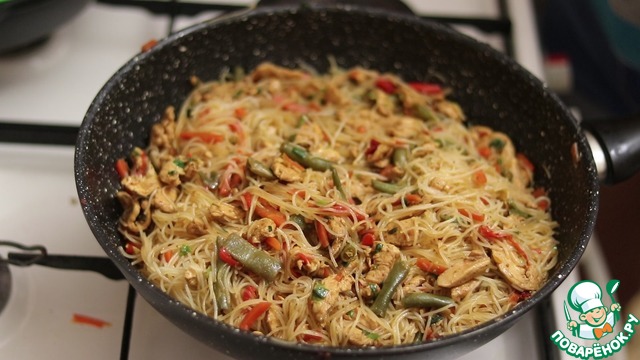Рецепт «Вок фунчоза с овощами и курицей»: