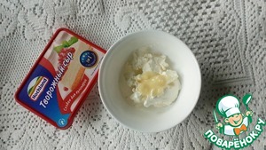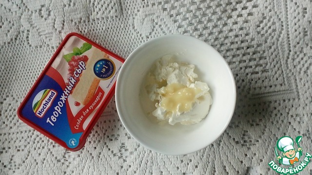 Смешать творожный сыр, сливки и сгущенное молоко.