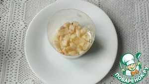 Выложить сырок (нарезанный или натертый) и кубики груши.