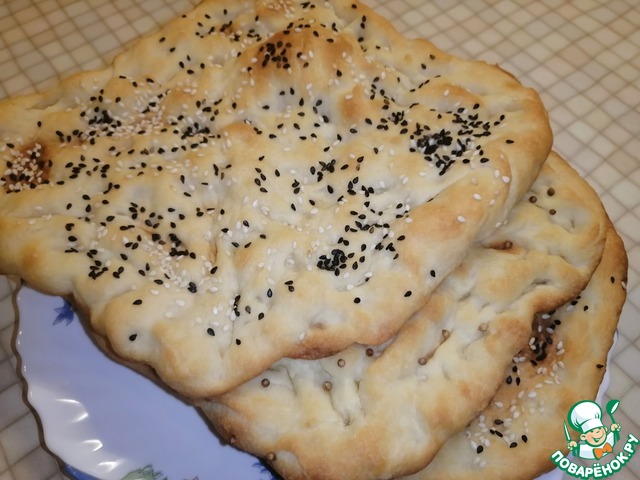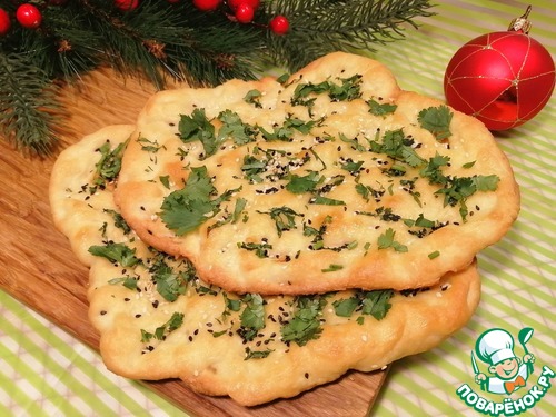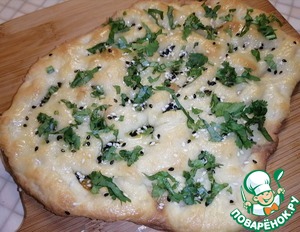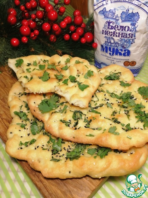 Ароматные дрожжевые лепёшки с кунжутом и кинзой.