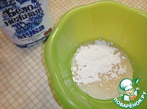 Частями добавить просеянную муку "Бело-нежная". Замесить тесто.