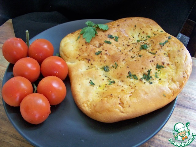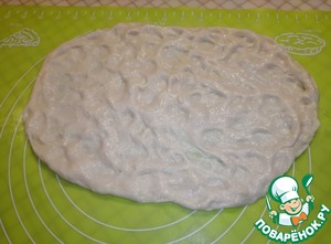 Аккуратно перенести лепешку на противень, застеленный пекарской бумагой. Поставить в заранее разогретую духовку на 180° на 15-20 минут. Ориентируйтесь на свою духовку.