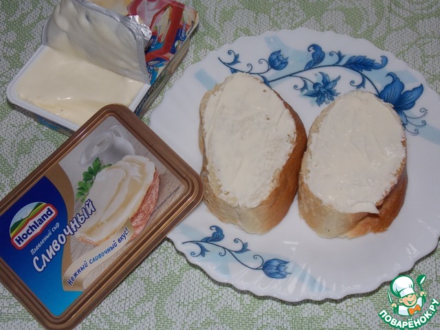 Смазать каждый кусочек плавленым сыром Т. М. Хохланд.