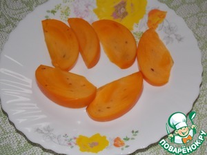 Хурму нарезать на небольшие ломтики. Лучше использовать не совсем мягкий плод.
