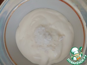 Подготовьте сметану (300 г) и добавьте соду (5 г), чтобы запустить реакцию.