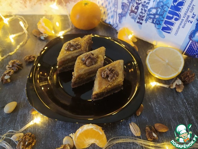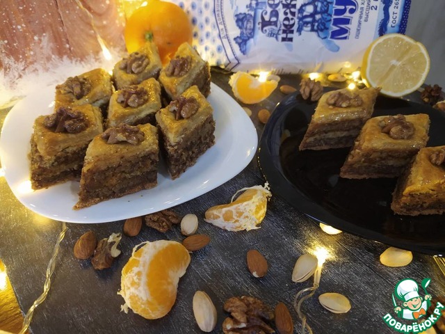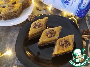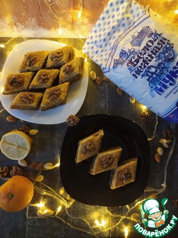 Как часто бывает попробуешь что-то, а потом долго ищешь рецепт, чтобы повторить "тот самый вкус". Это тот самый случай. Янтарно-золотая, блестящая, с цельным орешком в центре и едва уловимым ароматом пряностей. Эту пахлаву берёшь в руку и ощущаешь, насколько она нежная, мягкая и сочная. Оказалось, рецепт до неприличия простой как и ингредиенты. Главное чётко следовать всем тонкостям и всё получится!