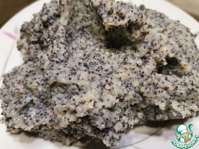 Сначала приготовим маковую начинку. Манную крупу смешаем с маком.
