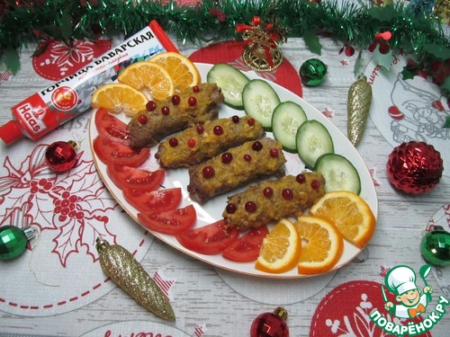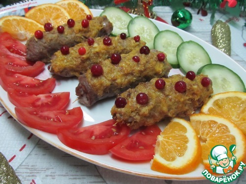 Вкуснейшее сочетание сочной свинины с яблоками, апельсинами, брусничкой и пикантной горчицей. Рулетики подойдут как в виде горячего блюда, так и в качестве холодной закуски на следующие дни после праздника.
