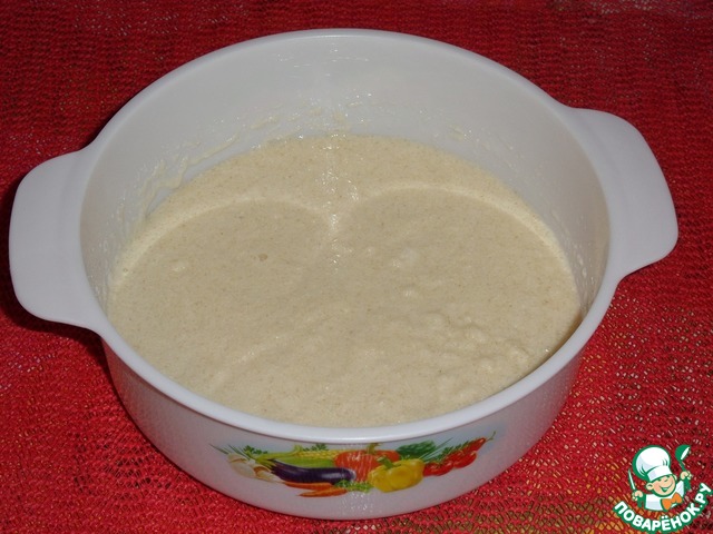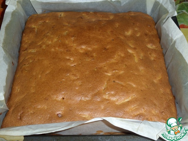 Выкладываем тесто в форму для выпечки, застеленную пергаментом.