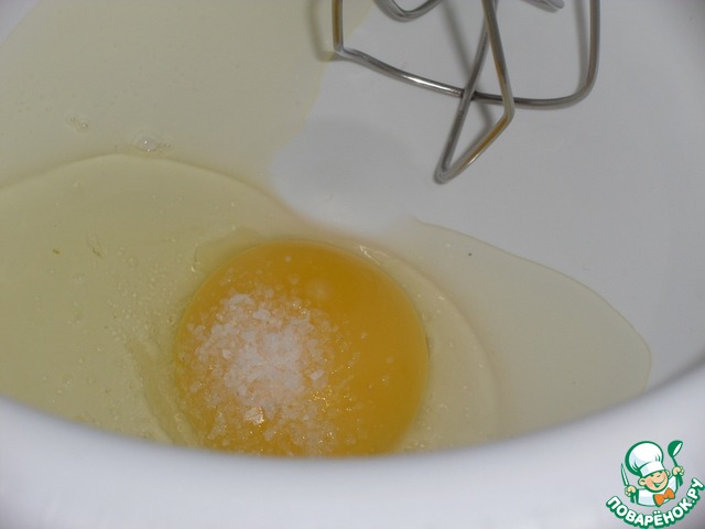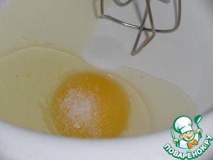 В чашу миксера разбиваем яйцо. Добавляем щепотку соли. -