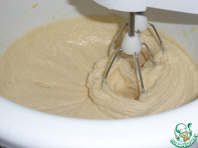 Затем добавляем в чашу миксера растопленное остуженное сливочное масло, манно-кефирную массу, творожный сыр ТМ "Hochland ", ванилин.