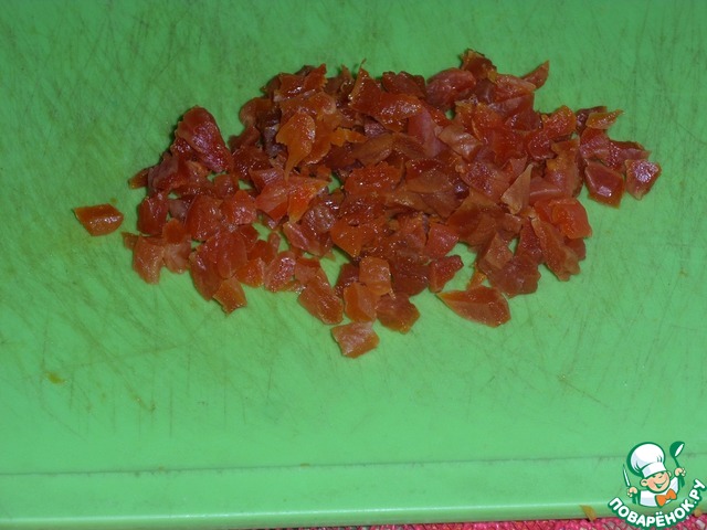 Курагу промываем. Затем заливаем горячей водой и оставляем на 5-10 минут. Затем воду сливаем.