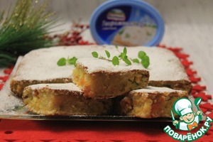 Слегка остужаем пирог. Посыпаем сахарной пудрой и подаем.