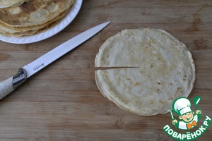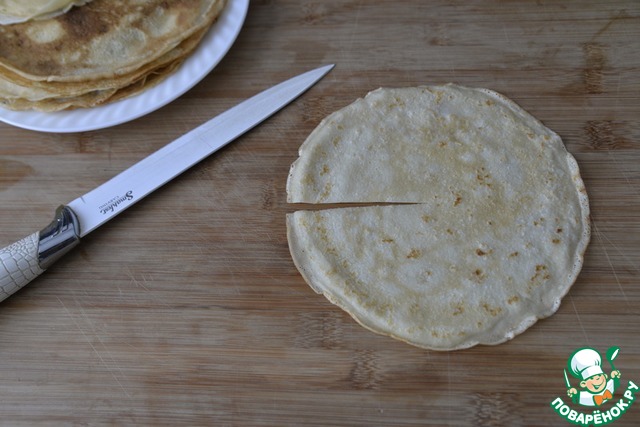 Рецепт подразумевает, что вы уже приготовили блины по вашему любимому рецепту или одному из рецептов на сайте. Мне нравится, когда они чуть сладковаты на вкус.