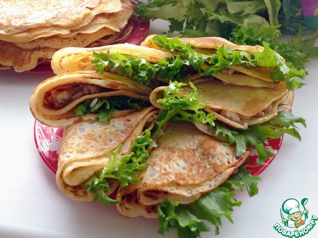 Рецепт «Закуска из блинов, фаршированных мясом»:
