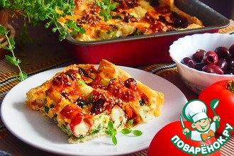 Выпекаем пирог 30-40 минут при 180-200 градусах, ориентируясь на свою духовку.
