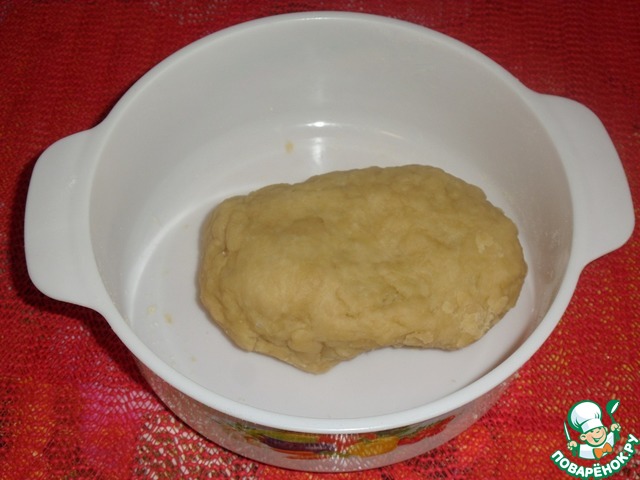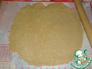 Тесто достаем из холодильника. Раскатываем тесто в виде лепешки.