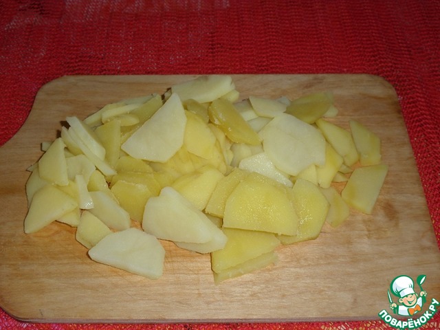 Картофель заранее отвариваем в подсоленной воде. Остужаем. -