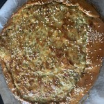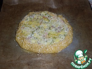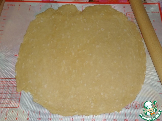 Выкладываем лепешку на противень, застеленный ковриком для выпечки.