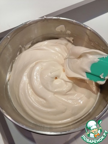 (!)Плотная меренга не осядет от жирной смеси за счёт немалого кол-ва сахара, что делает бисквит более прочным и воздушным, поэтому лучше сделать менее сладким крем, а в бисквит добавить достаточно сахара. -