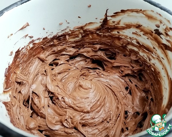 По истечении 2х часов достать шоколадную массу и взбивать до тех пор пока не посветлеет и станет пышной. Не стоит делать это слишком долго, иначе можно получить масло.