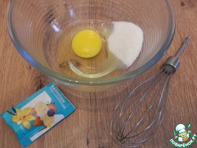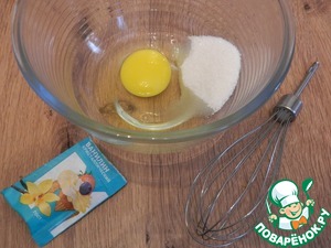 Приготовим продукты для заливки. 50 грамм сахара,1 яйцо, ванилин.