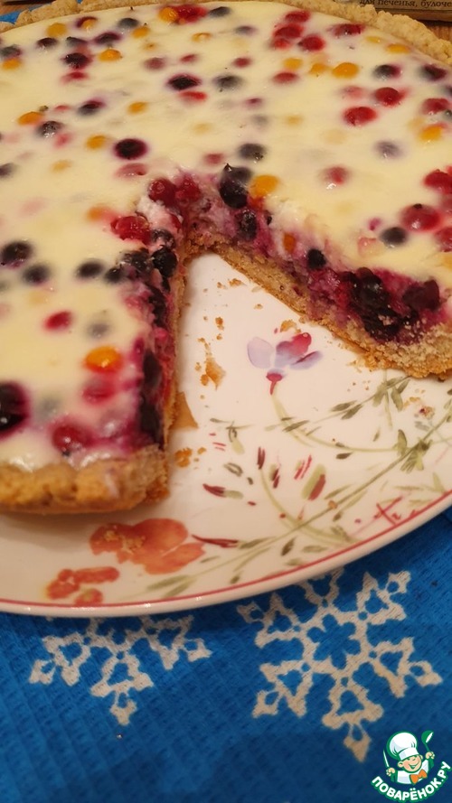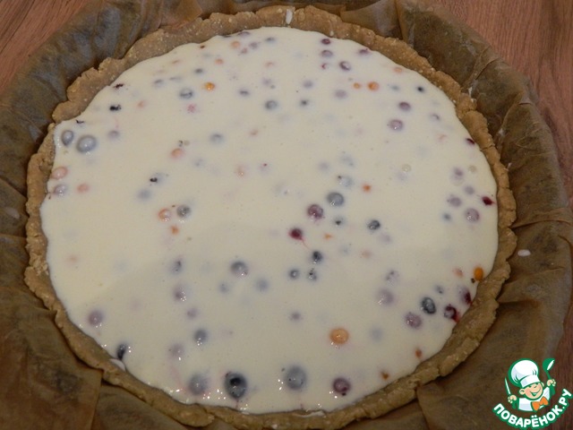 Выльем заливку на ягоды и поставим в духовку выпекаться при температуре 200 градусов на 25 минут и 20 минут при 180 градусах.