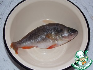 Рыбу (у меня небольшой, речной окунь) подготовить к запеканию. Почистить и убрать внутренности, помыть и обсушить на бумажном полотенце.