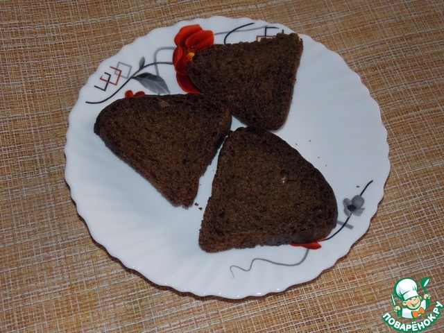 Выложить хлеб на тарелку. Я использовала черный хлеб с изюмом.