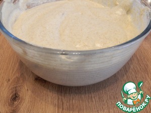 Начнем добавлять муку порциями и аккуратно перемешиваем массу ложкой.