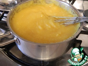Размешаем венчиком массу и варим непрерывно помешивая на маленьком огне где-то 5 минут.