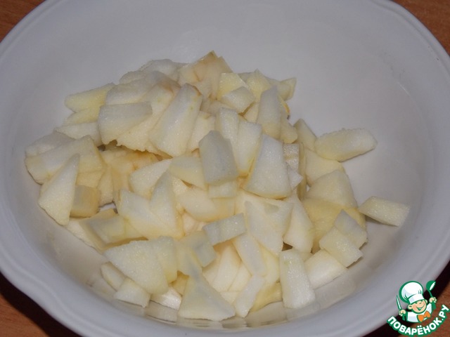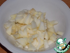 Яблоки очистить, убрать серединки и нарезать маленькими кусочками.