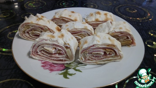 Рулетики из лаваша с сырно-беконовой начинкой