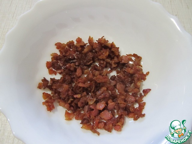 Сыро-копченый бекон обжарить.