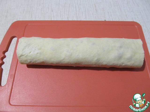 Рулет разрезать кусочками 2см.