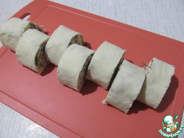 Рецепт «Рулетики из лаваша с сырно-беконовой начинкой»: