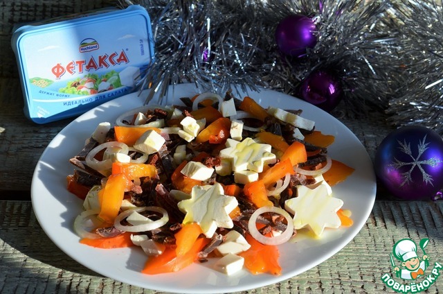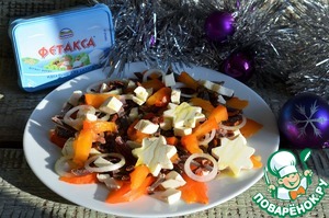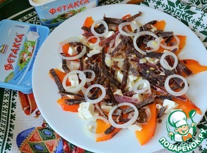 Рецепт «Салат с фетаксой, бастурмой и хурмой»: