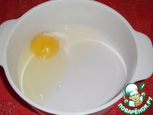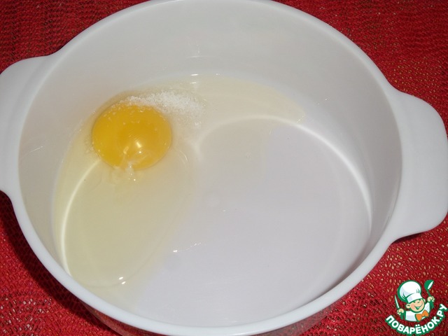 В чашку разбиваем яйцо. Добавляем щепотку соли. Слегка взбиваем вилкой.