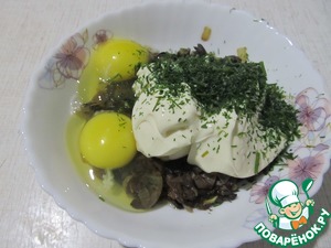 Добавить яйца, плавленый сыр и укроп ( у меня замороженный).