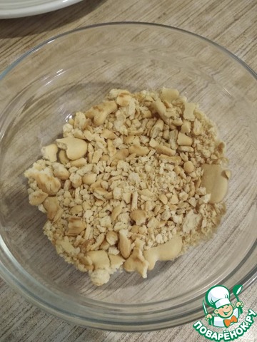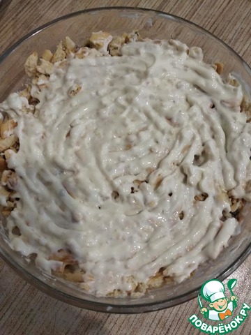 • Первый слой выкладываем половину крекера, каждый слой смазываем майонезом.
