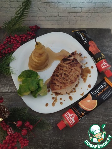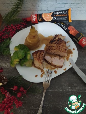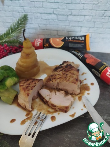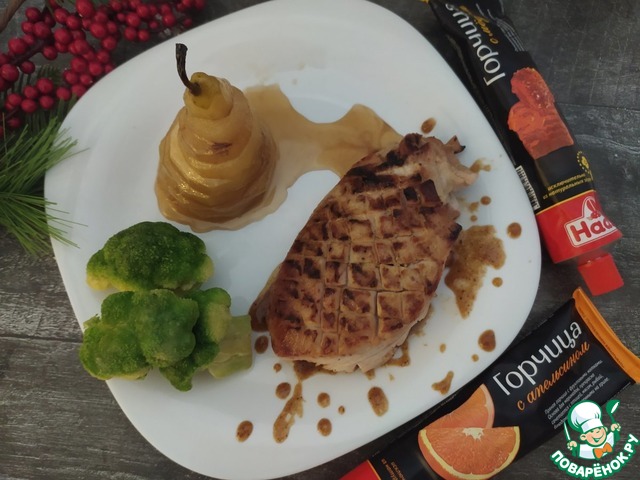 Предлагаю Вашему вниманию филе индейки в горчично-медовом соусе с грушей глазированный в вине.